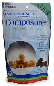 When humans are exposed to new environmental stressors like a new job or the in-laws visits, we can relax with a warm bath, a cup of tea, or a soothing song. When cats and dogs are exposed to similar stressors (like a car ride or a new baby), their options for relaxation are fewer. Anxiety can run high in dogs who are unwittingly placed in different environmental situations, causing actions like incessant scratching, barking, urine marking or aggressive behavior. Composure Chews are formulated to address these habits and the anxiety that leads to their proliferation.