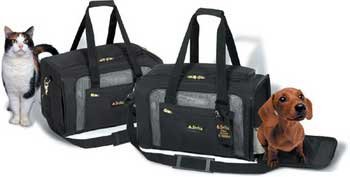 The official pet carrier of delta airlines, the Sherpa delta deluxe meets all flight requirements and ensures that your pet flies safely and securely under the seat in front of you. each carrier features mesh ventilation on all four sides with a pocket on one side and roll up privacy flaps on three sides. a machine-washable faux-lambskin liner and detachable shoulder strap are also included. top and side entry.