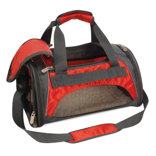 Sherpa sport collection pet carrier - the sport dufflein small and medium. Great for cats, Small dogs and other littlepets. Features mesh panels for ventilation. Mesh panels for ventilation. Top and double-sided entry. Zippered side pockets. Convenient shoulder strap. Reflective trim for safety. Size: medium, color: red. Measures 10-1/2-inch length by 18-inch width by 11-inch height.