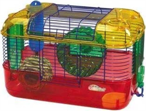 Complete one level habitat for all hamsters, gerbils and mice. Includes hanging nest for napping and wire rooftop door for easy access. Create a dream environment with expandability ports that allow connectible accessories to be added. Easy to clean construction with deep base. Well ventilated environment. Includes quiet exercise wheel, water bottle and food dish. Super protect technology built into all interior surfaces to provide a healthier habitat.