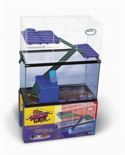 The my first home tank topper converts any 10 gallon tank into a multi-level high rise for hamsters, gerbils, and mice. The wire tank topper snaps together in minutes. The tank topper comes complete with comfort shelves, safety ramps, a "Bowl in the Hole" food dish, critter canteen water bottle, and a little brick house hide-out. A free pet name plate is also included to personalize your critter's home. My first home tank topper is available in two color combinations.
