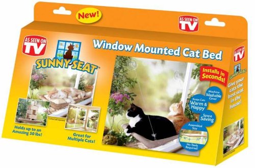 Window-mounted cat bed keeps cats safe, warm and very comfortable